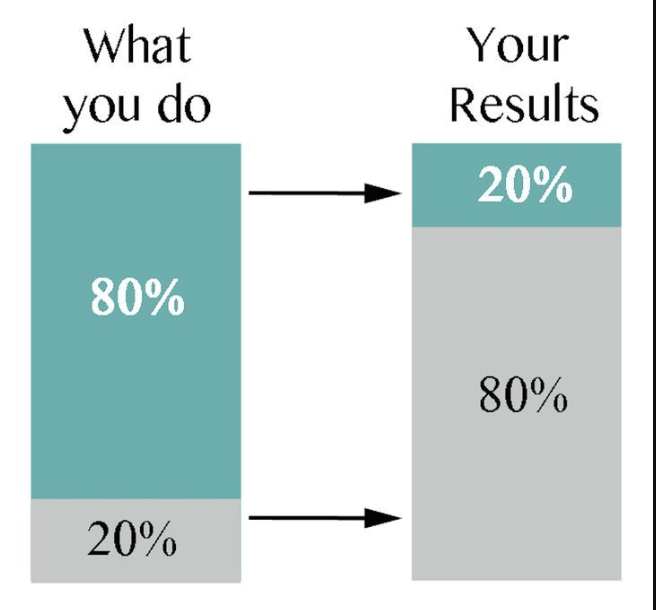The 80/20 principle says that 80% of your output, results and happiness comes from just 20% of your input, efforts and interactions.